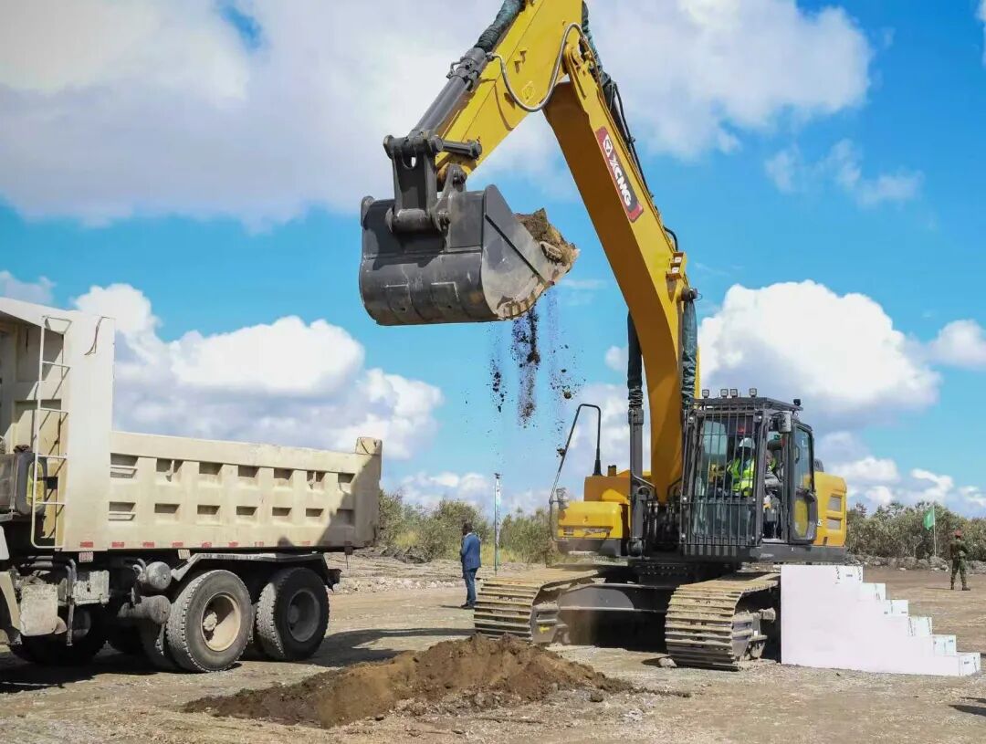 中企在肯尼亞首個綠色化肥生產項目——肯尼亞納庫魯郡48萬噸/年綠色化肥及配套地熱電站奠基儀式上,總統威廉魯托親自試駕徐工挖掘機,對設備的精準操控性能與高效作業表現給予高度評價。