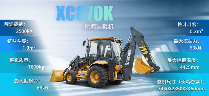 徐工XC870K挖掘裝載機搭載徐工定制滿足TIER Ⅲ排放發動機,徐工專用變速箱、驅動橋,表現出動力強勁,傳動平穩、可靠等優點。采用世界領先的液壓系統分配技術,工作裝置結構優化,保障高強度、高效率、高節能的作業需求。另外還配置了高溫、高寒、高原、高粉塵等多種環境適應性技術,滿足客戶不同工況需求。