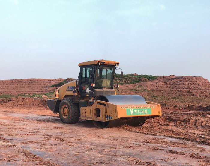 如徐工XS365單鋼輪振動壓路機就參與過機場的道路壓實工作。機場的開荒作業并非一件易事,XS365表現出超強的動力性能以及工況適應性。經過特別硬化處理的高強度耐磨鋼輪,使XS365能在各類極限工況中依然運轉自如,是當之無愧的徐工壓路機界重載明星。