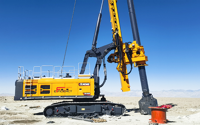 徐工XR468F旋挖鉆機助力青海鹽場項目進行取樣,為當地礦鹽資源的高效開采提供設備支撐。