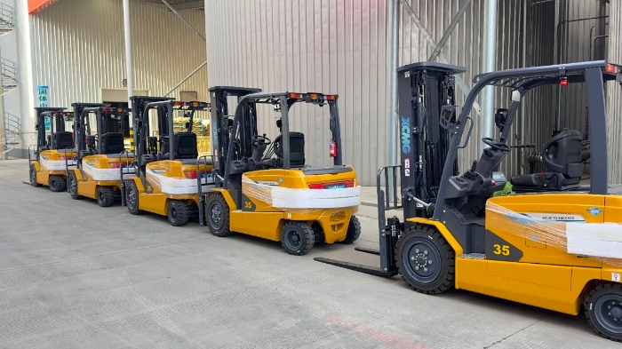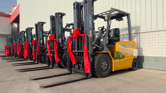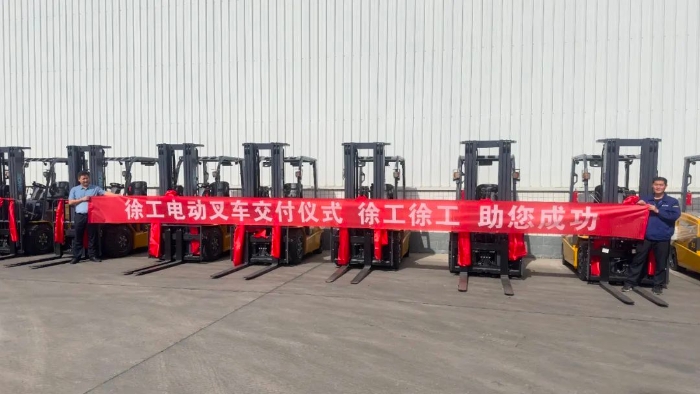 在綠色發展的浪潮中,徐工叉車再傳捷報!百余臺鯤鵬 C 系列電動平衡重叉車順利交付華中地區某大型食品企業,為其綠色、可持續發展注入強大動力。