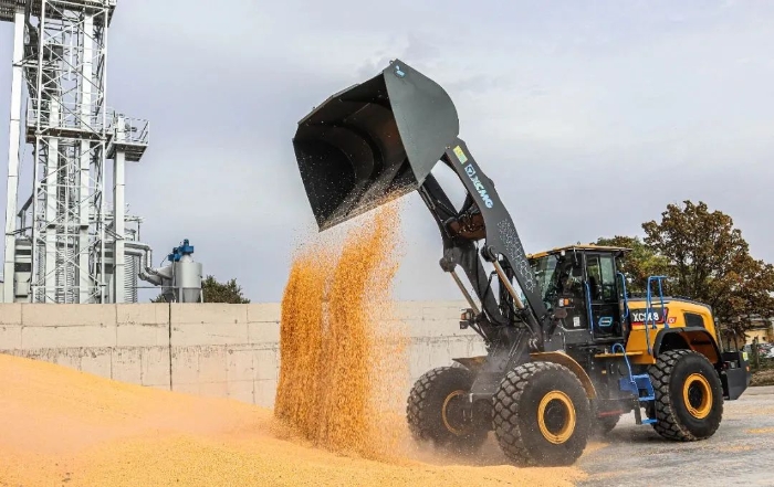 眼下,在歐洲某農產品加工廠,徐工XC968-EV純電動裝載機正迅速揮動大臂,翻動室外晾曬的谷物。
