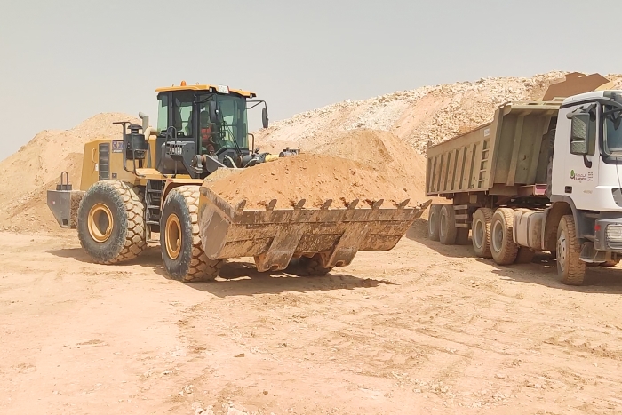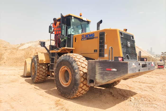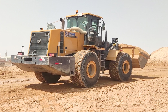中東當(dāng)?shù)匾蛔笮凸珗@的建設(shè)現(xiàn)場(chǎng),徐工LW700HV正熱火朝天地干著。