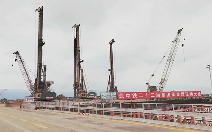 在深水基礎施工中,徐工采用創(chuàng)新的鋼護筒加超大旋挖鉆施工方法,確保一次性成孔,大大提升了施工效率。
