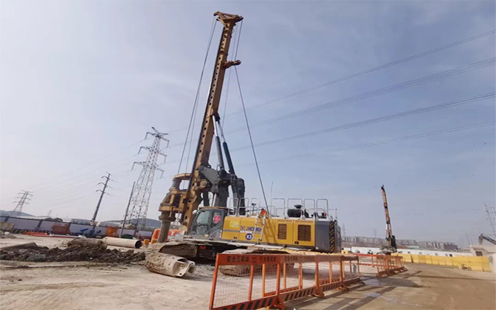徐州地層有灰?guī)r,硬度80Mpa以上。施工環(huán)境復雜,地質(zhì)條件多變,徐工旋挖鉆機首當其沖,干勁十足!