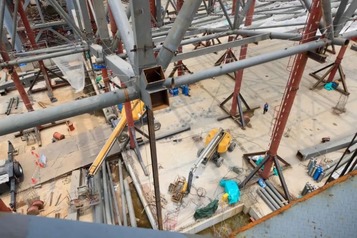 深圳前海,全球規模最大、國內落差最高的室內滑雪場——華發冰雪世界滑雪場,正在如火如荼的施工中。