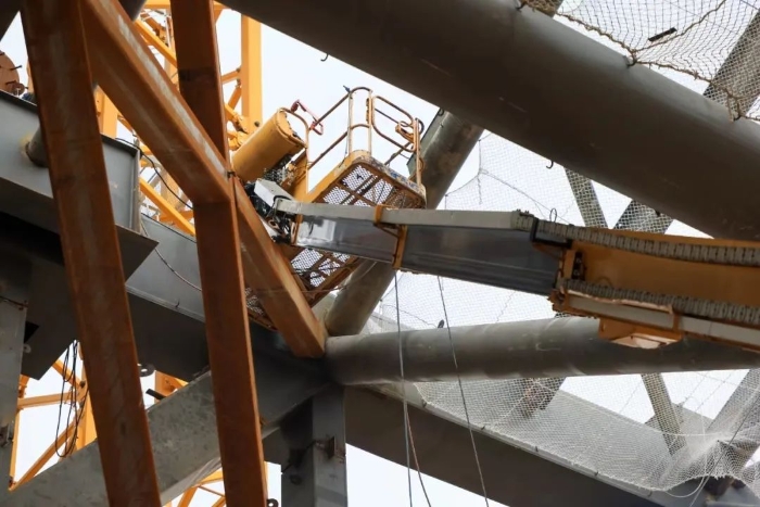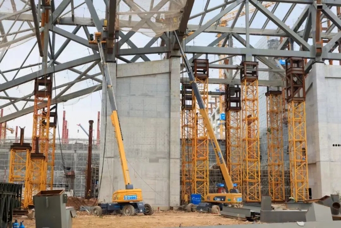 忙碌的工地上,隨處可見“徐工金”辛勞的身影。此次參與施工的有四十余臺徐工高空作業平臺,高度從22米到40米不等,主要負責場館鋼結構的安裝工作。