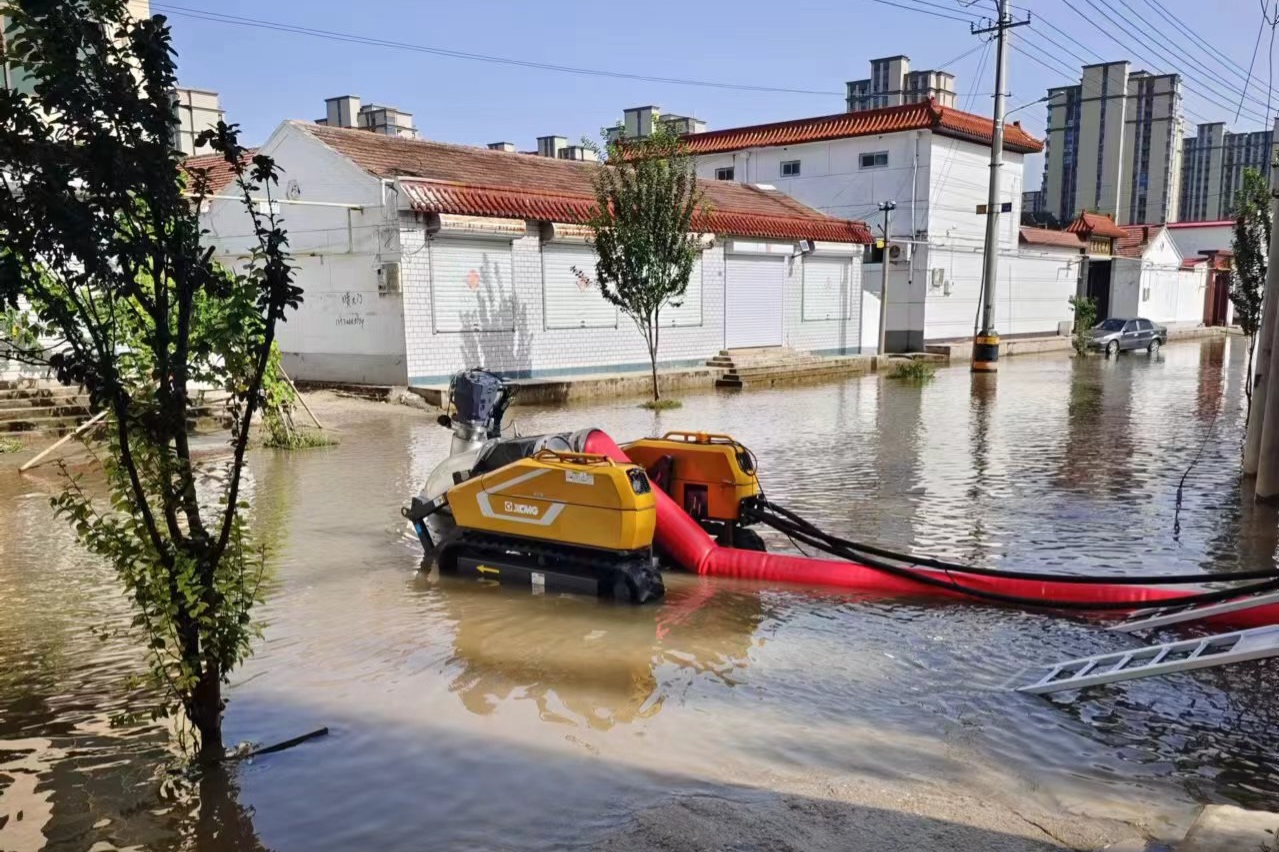 近日,受持續強降雨影響,河北廊坊霸州市城市內澇嚴重。聞“汛”后,徐工子母式排水搶險車PS30F4連夜奔襲,馳援排澇搶險!