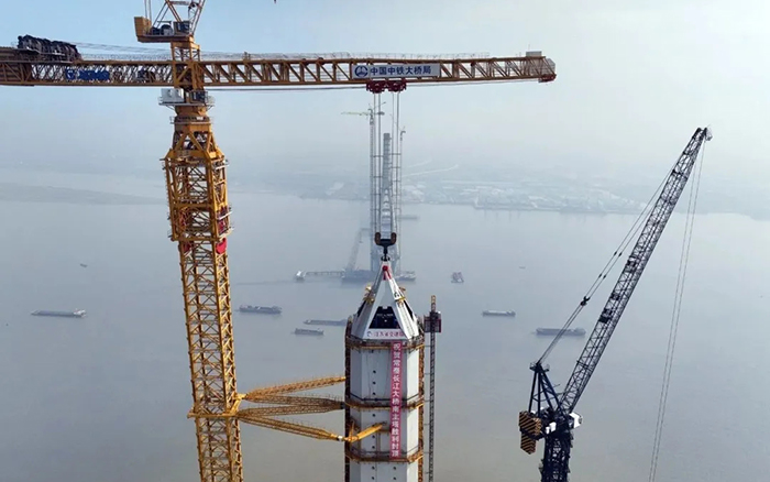 悠悠江水、大塔聳立,徐工超大塔XGT15000-600S“建”證常泰長江大橋主航道南主塔節節攀升,打造中國超大跨度多功能橋梁里程碑工程。徐工塔機將持續打造更高品質、更可靠的產品,助力國家橋梁建設邁向新高度。