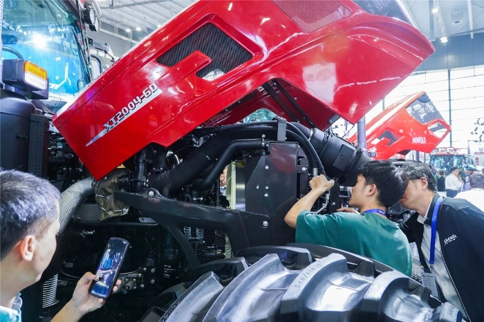 此次為徐工首次參加農(nóng)機展。展會現(xiàn)場,來自全國各地的用戶、經(jīng)銷商、農(nóng)機愛好者匯聚一堂,共話農(nóng)機行業(yè)新技術(shù)、新趨勢、新機遇。徐工展區(qū)內(nèi),人頭攢動,凝聚徐工農(nóng)機人智慧與匠心的五款明星產(chǎn)品閃耀登場,吸引了眾多客戶及合作伙伴熱情咨詢、現(xiàn)場商談,全方位展示了“高技術(shù)、高質(zhì)量、高性價比”大型化、成套化產(chǎn)品的風(fēng)采。