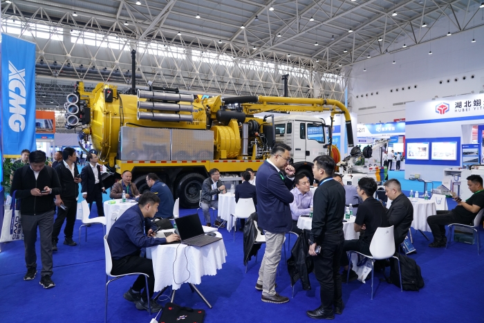 本次中國國際管網展覽會上,徐工大流量排水搶險車、清洗吸污車、下水道疏通清洗車、小型輪式抓斗車、小型履帶式水沖車管等設備悉數亮相。