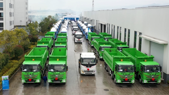 近日,徐工新能源重卡百臺交付儀式盛大舉行。百余臺徐工新能源成套化運輸設備整齊列隊,氣勢恢宏,猶如一支綠色軍團,為四川區(qū)域綠色運輸?shù)母哔|量發(fā)展注入強勁動力。