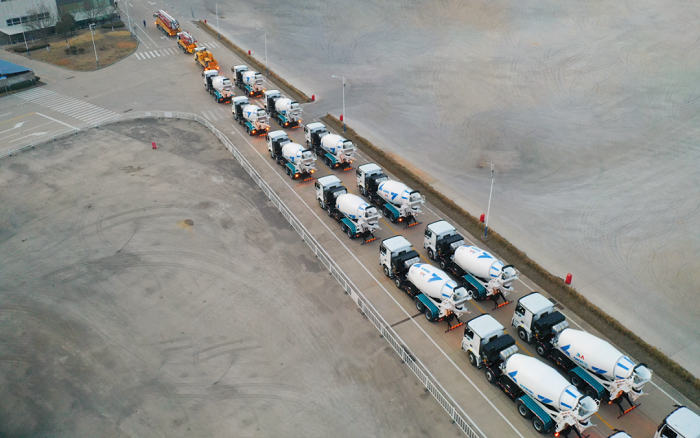 徐工新能源攪拌車延續(xù)強勢表現(xiàn)。排列整齊、蓄勢待發(fā),即將奔赴江蘇南通,助力當?shù)刂惺晚椖俊?/p>