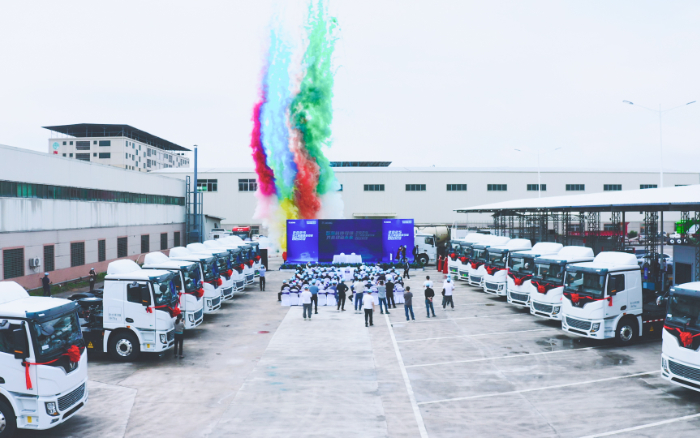 近日,百臺徐工新能源重卡交付儀式在“世界客都”——廣東梅州如期舉行,助力當地砂石料、水泥輔料及煤炭運輸。客戶及徐工汽車代表等百余人參加活動。
