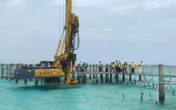 本次施工項目地質條件復雜,表層為松散砂質土,下層為密實珊瑚巖層,對樁基施工的精度與設備性能提出了嚴峻挑戰。