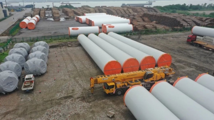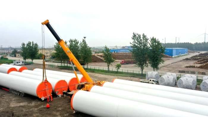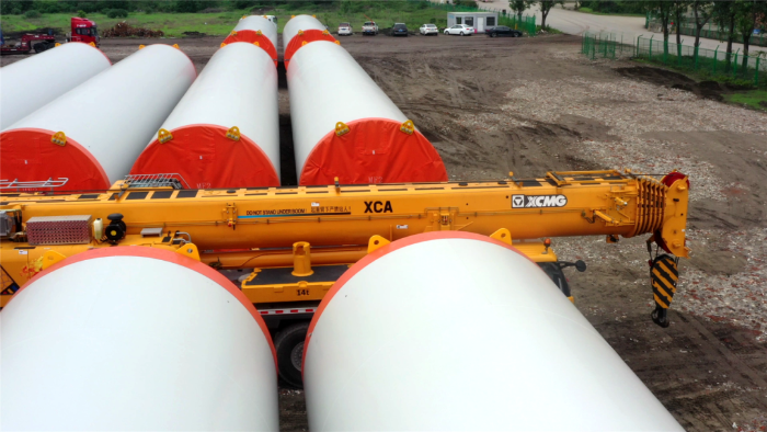 在繁忙的港口,長40米、重100噸的風(fēng)力發(fā)電塔筒擺放整齊,等待著一次關(guān)鍵的騰挪,吊裝空間局促——塔筒擺放距離較近,蕩距空間嚴重受限,這是對起重機性能與操控的極致考驗。徐工G2代起重機XCA200G8-1從容入場,以實力宣告:空間,絕非限制。