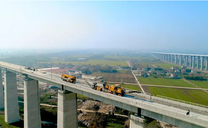 通過毫米級(jí)精度控制技術(shù),實(shí)現(xiàn)了復(fù)雜橋區(qū)多場景施工的高效協(xié)同,有效提升了橋面平整度與施工效率,確保了全球最大跨度斜拉橋的鋪裝質(zhì)量。