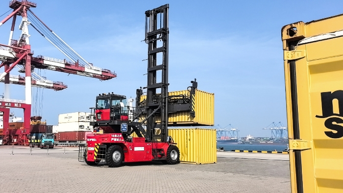 在山東港口繁忙的作業前沿,徐工純電動堆高機舉重若輕,動作行云流水——快、穩、準,高效流轉一次就位。