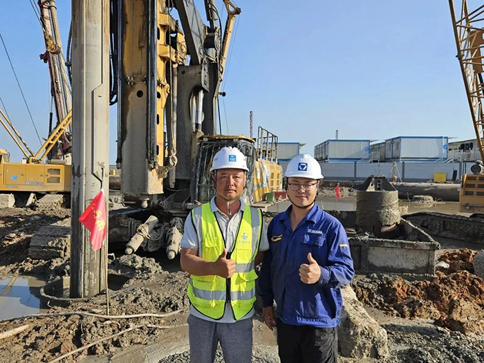 旋挖鉆機群不間斷施工的同時,徐工技術人員與服務團隊全天候走訪巡檢,有力保障項目工期節點。